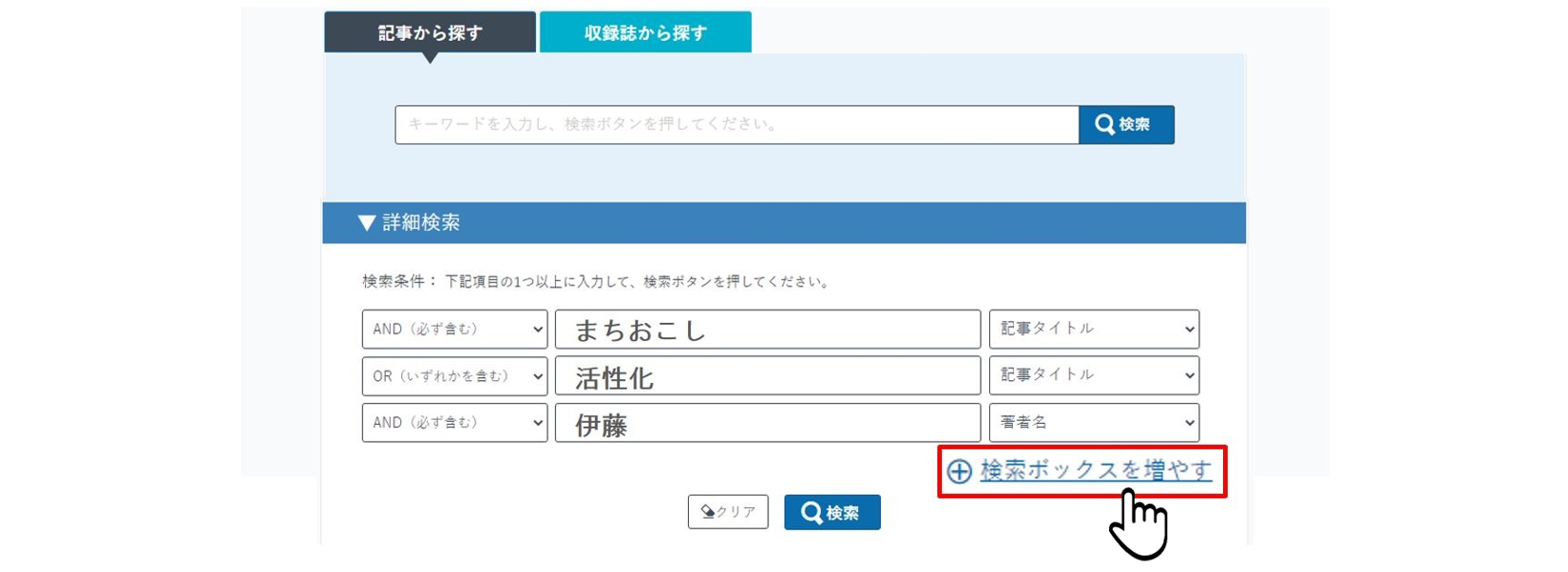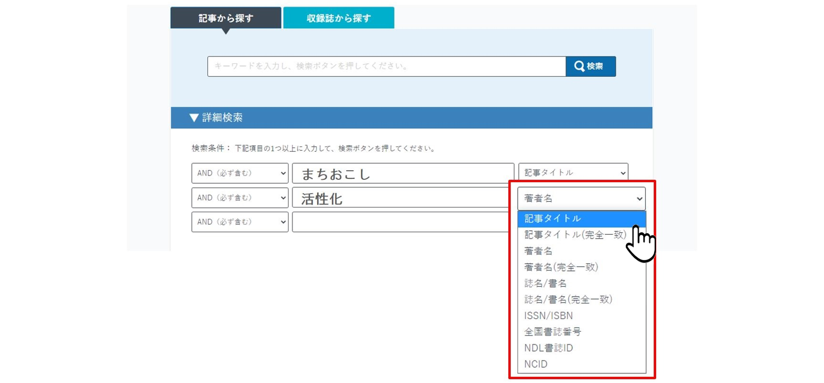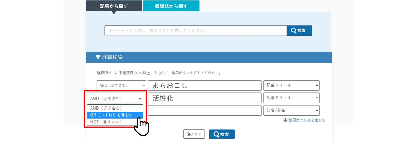 簡易検索、詳細検索のどちらにでも組み合わせ可能です。