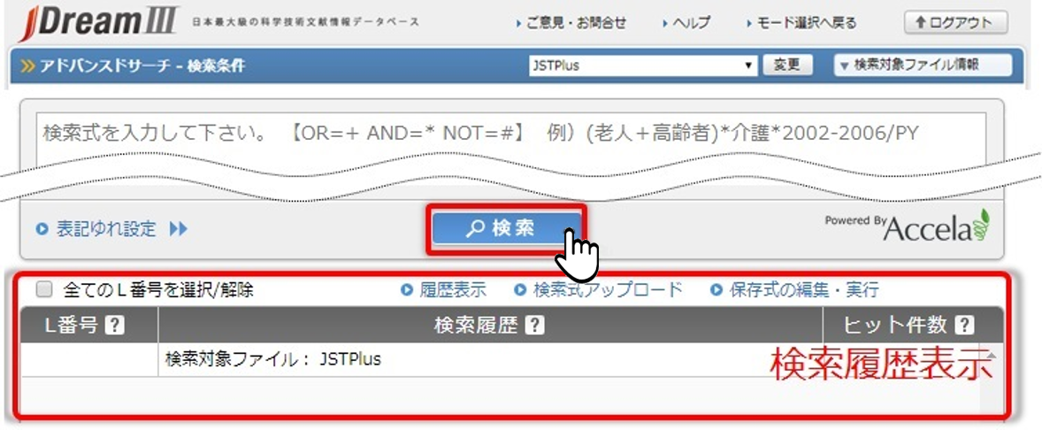 各L番号の右、検索式の部分を押すと、その式が「検索式入力」ボックスにセットされます。
