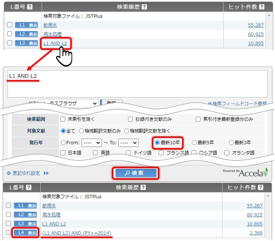 例2:「L3」の検索結果のうち、「最近10年以内に発行されたもの」に絞り込む。