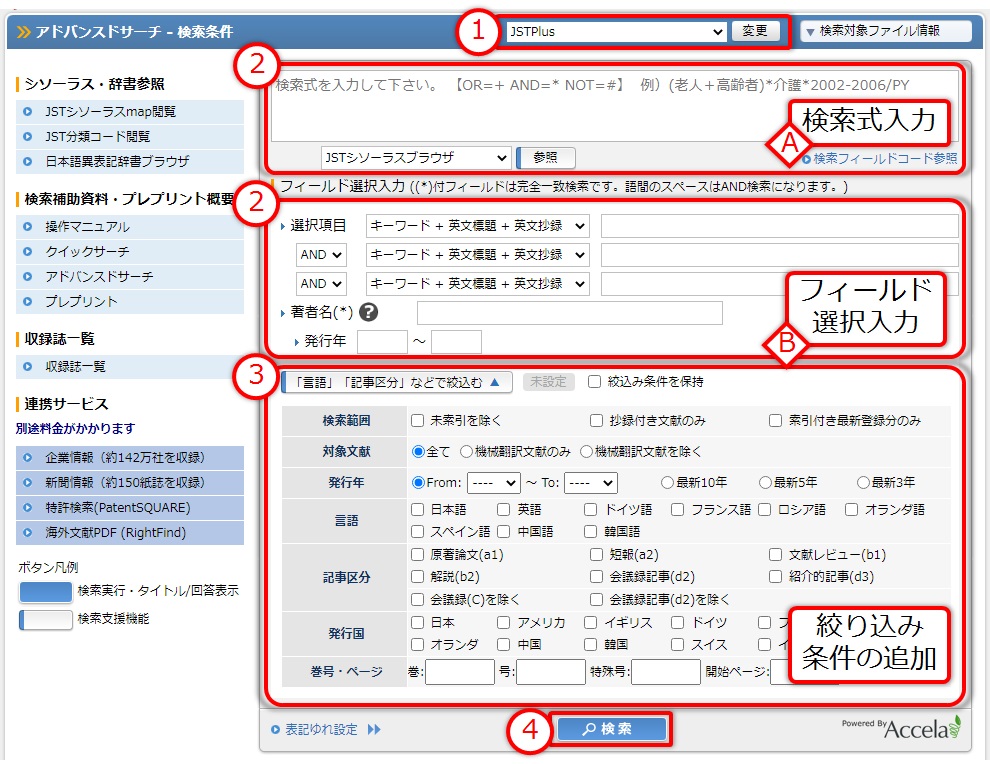 アドバンスドサーチの検索語の入力方式は「検索式入力」と「フィールド選択入力」の2つあります。それぞれ見ていきましょう。