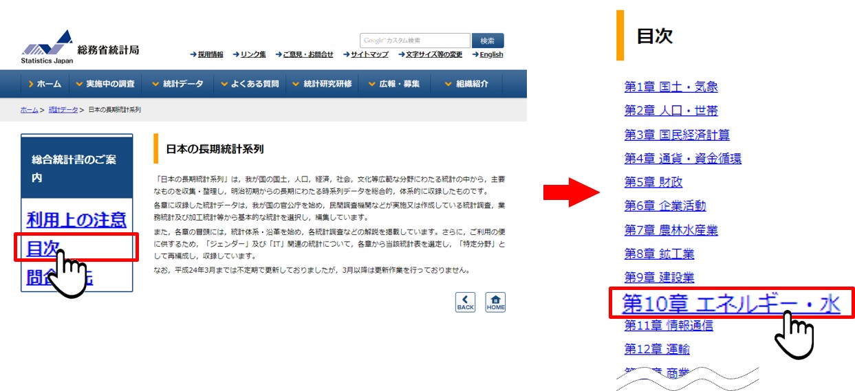 この例の場合、まず「第10章 エネルギー・水」分野を選択します。