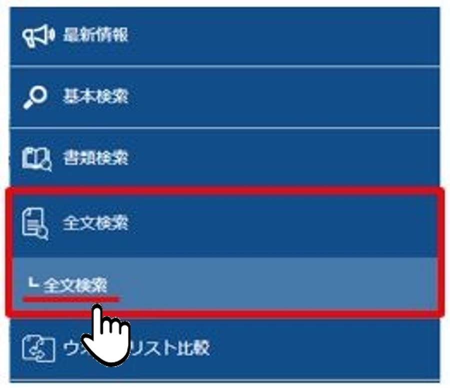 画面左の項目「全文検索」の「全文検索」をクリック。