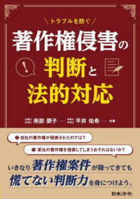 トラブルを防ぐ著作権侵害の判断と法的対応/南部朋子, 平井佑希共著. -- 日本法令, 2021.