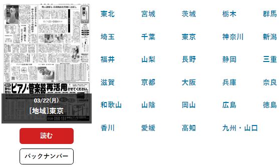 東京/大阪・朝刊/夕刊の、読みたい発行分を選択することができます。