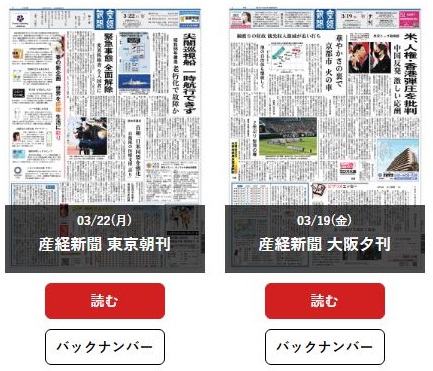 【 東京朝刊/大阪夕刊 の紙面を読むには・・・ 】