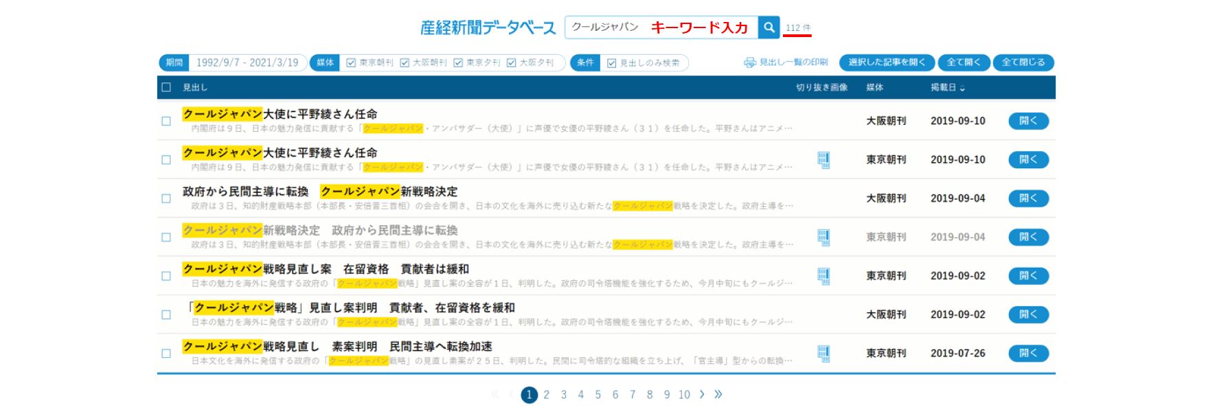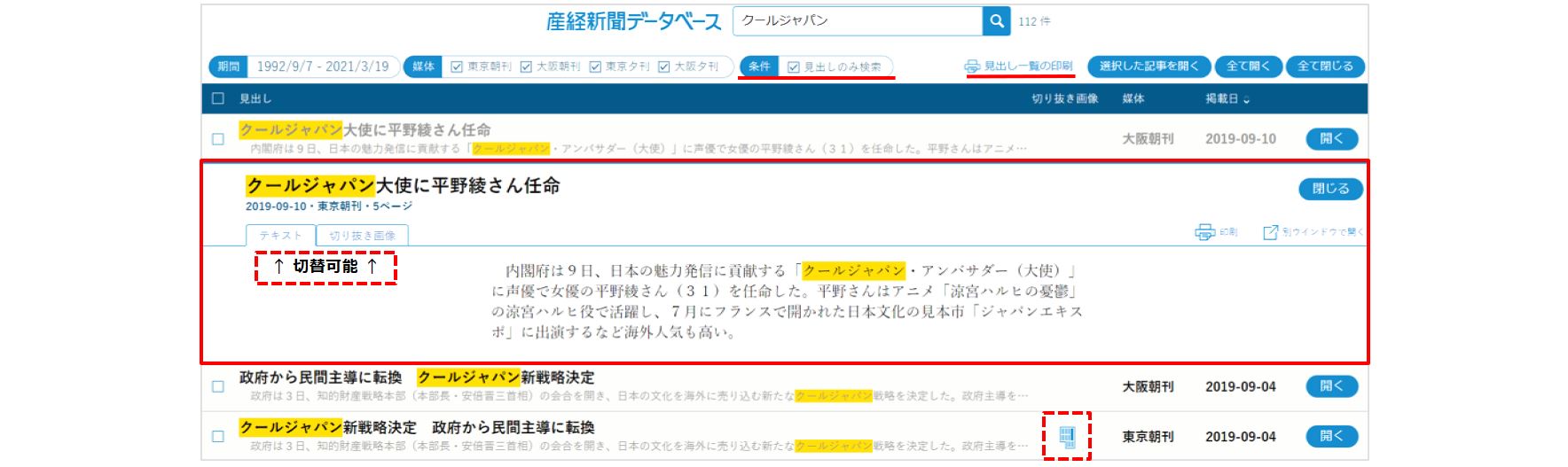 資料タイプ「新聞_ニュース」を選択すると便利です。