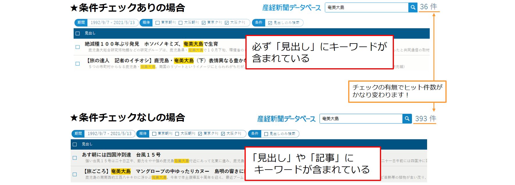 ※ チェックの有無でヒット件数がかなり変わります!