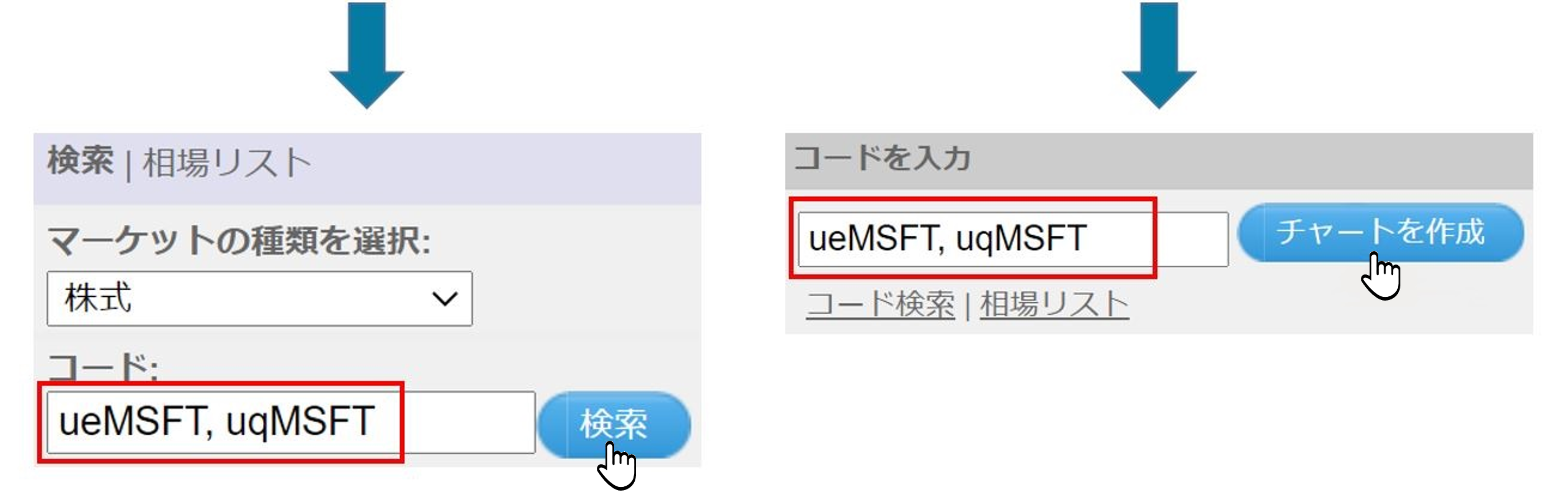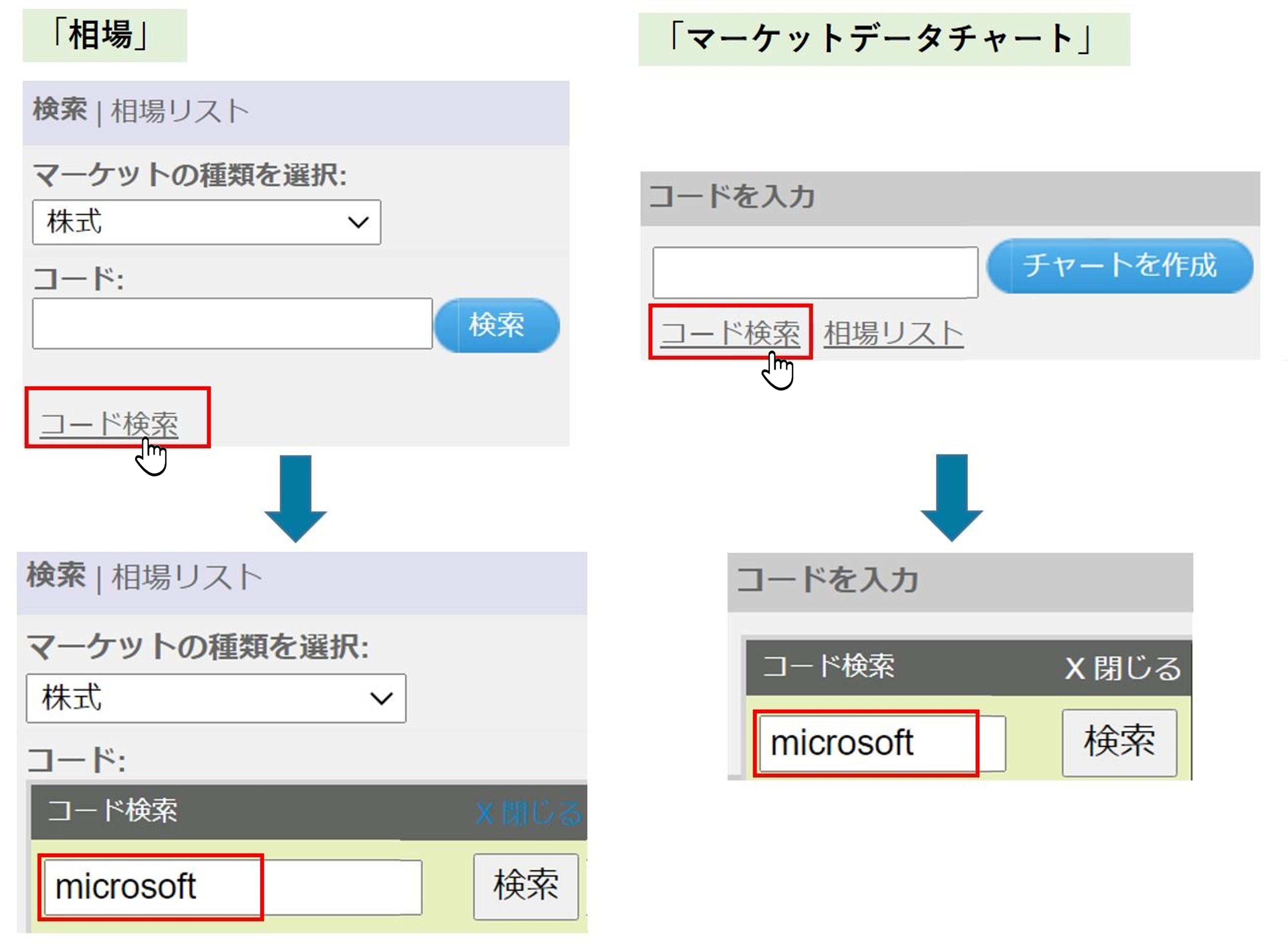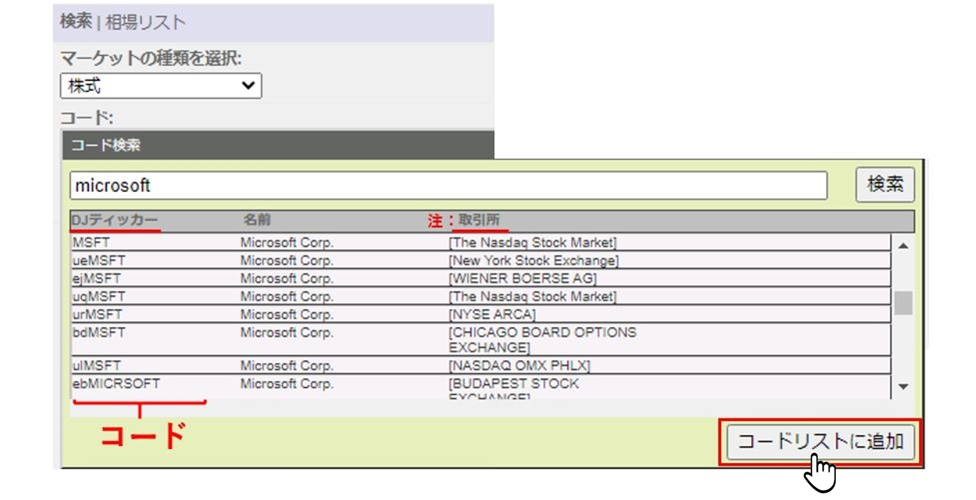 「マーケットの種類を選択」し、コードを入力 して、をクリック。
