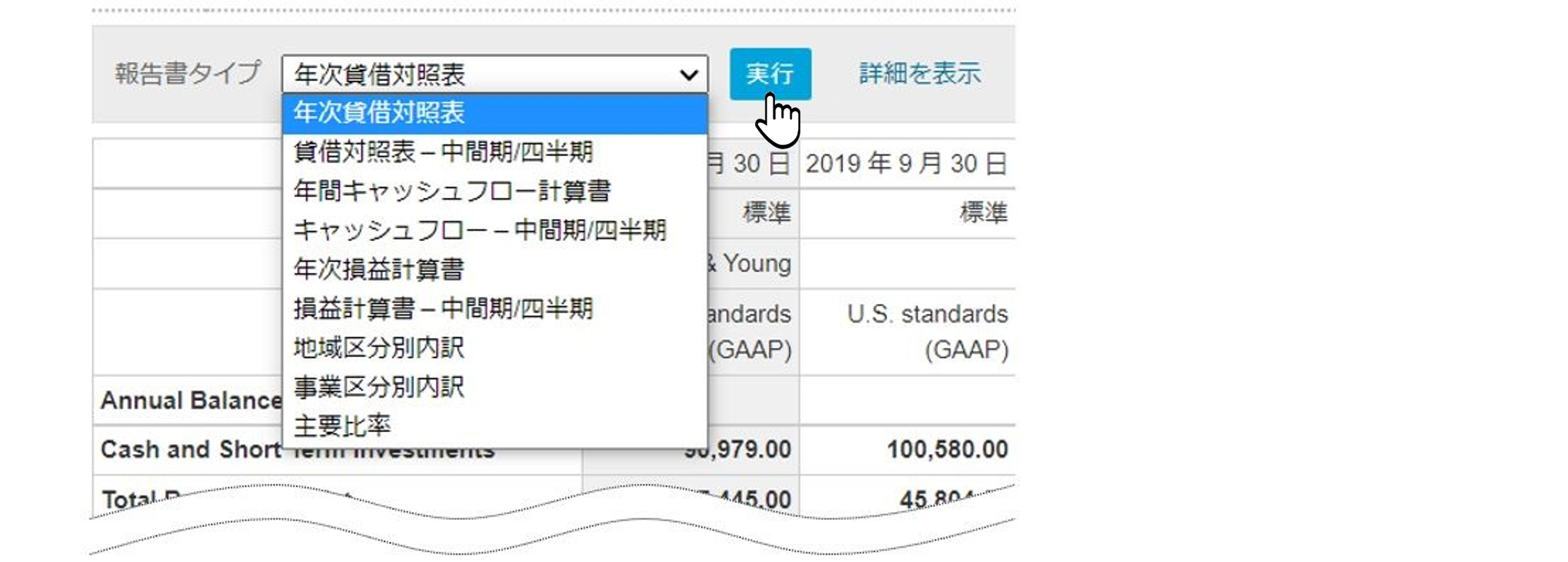 株価の推移を表示します。同じ会社の異なる証券取引所における株価や、複数の株価指数などを同時に表示させ、